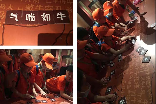 院内还有智力趣味小游戏,孩子们齐心协力,开动脑筋,根据散落的单字,组成四字成语,不仅激发孩子的思维逻辑能力,团队协作也不必可少。