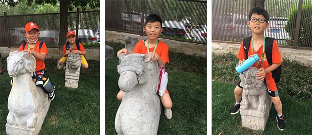 这条路上有很多拴马桩,每一个拴马桩上的动物或人物都造型别致,各不相同。让孩子们不由得感叹匠人们的精湛技艺。