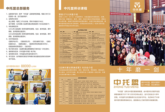 晋级教育在托管行业发展了18年,旗下推出托管学堂,友妈帮,中托盟三大品牌。三大品牌各有优势,其中中托盟是2022年初新推出的新品牌,目前正在火热招商中。如果你想在教育行业的红利时期,大赚一笔,却苦于没有经验,中托盟一定是你最好的选择。